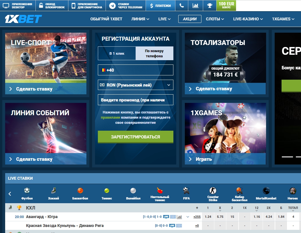 Регистрация в 1xBet и 1xСтавка